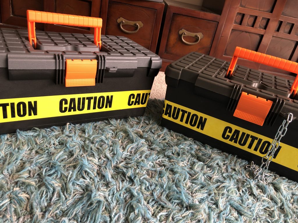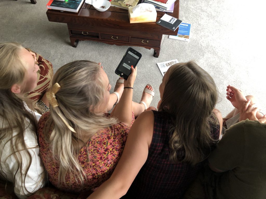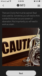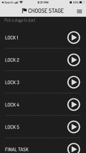 The adventure was a mix of ActionBound and a Breakout box. The app on a mobile device directed the teams (there were two teams of four) to the next task and sometimes gave digital clues. The aim was to unlock their groups black box. Preventing them from doing so was a chain and five locks which needed to be opened. The locks were a mix of number and letter combination locks as well as a key lock.
